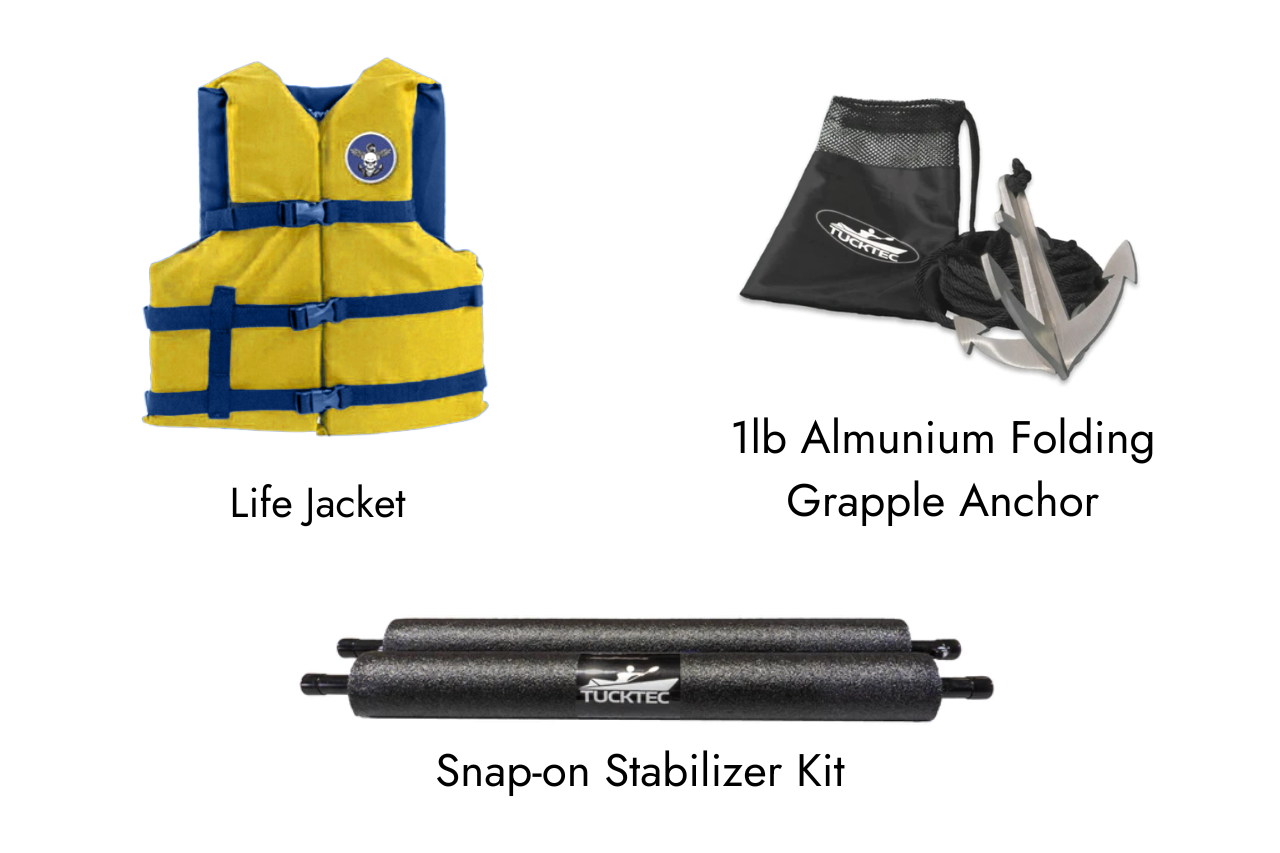 New to kayaking and still feel a bit "tippy"? Going fishing and don't want to worry about rolling if you hook a big one? Don't want to haul around a big outrigger kit? We've got you covered! This stability kit includes 2 support rails that clip onto the side skid plates of any Tucktec 2021 model and up! Simply assemble your kayak, pop the bars into place, and they will securely snap onto the side plates adding extra stability while you're out on the water! Perfect for beginners, fishing, hunting, nature photography and more!
