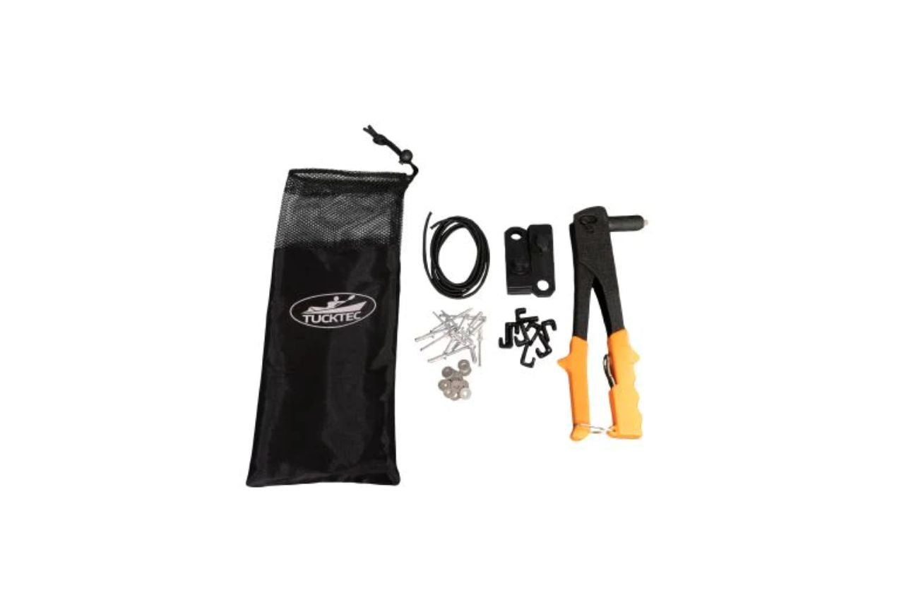 Introducing the Tucktec Hackit! We've seen all the amazing hacks and modifications that our community are making, and we decided to help out with that! This kit includes everything you need to "hack" your yak! It includes 1 hand-riveter, 12 standard rivets, 14 standard washers, 8 j-hooks, 2 adjustable clamps that will attach to just about anywhere on your kayak, and 5 feet of bungee cord! Just think of all the possibilities! Don't forget to select your bungee color!!